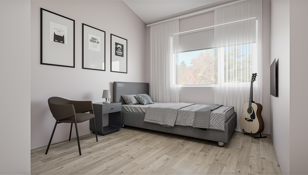- Hjónaherbergi: Rúmgott hjónaherbergi með veglegum fatahirslum.