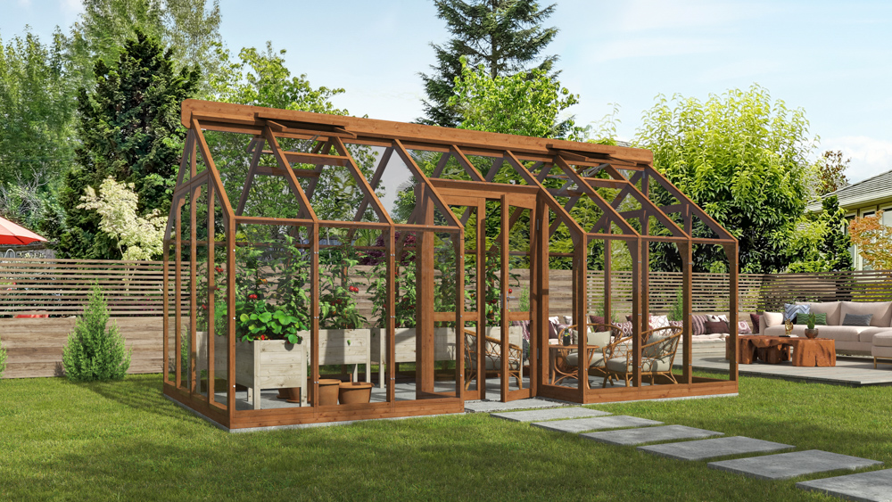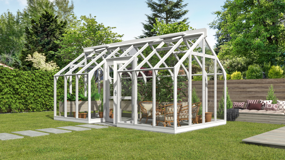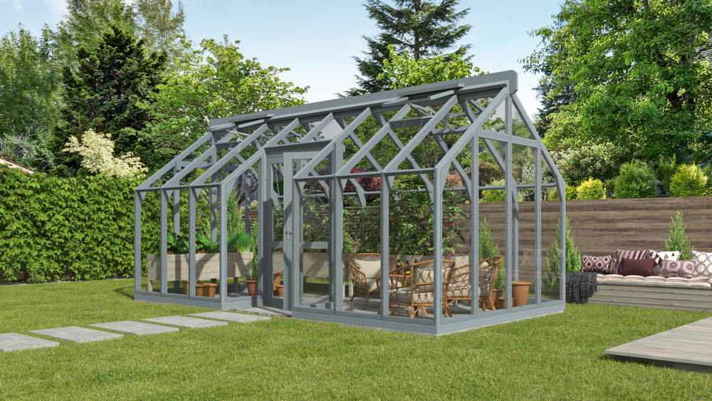 Lähe gróðurhús NS1 og NS2 með inndreginni hliðarhurð er fullkomin blanda af nútímalegri hönnun og náttúrulegum glæsileika, hannað til að falla vel að hvaða útisvæði sem er. Með einstakri gler-á-grind byggingu sinni er þetta gróðurhús úr timbri fullkomin samruni stíls, notagildis og nútíma verkfræði.
