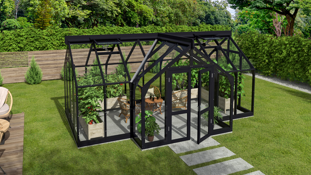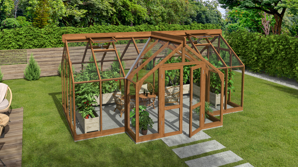 Lähe T-Laga gróðurhús NT1, NT2 og NT3 er fullkomin blanda af nútímalegri hönnun og náttúrulegum glæsileika, hannað til að falla vel að hvaða útisvæði sem er. Með einstakri gler-á-grind hönnun er þetta timburgróðurhús fullkomin samruni stíls, notagildis og nútíma verkfræði.